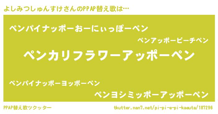 | 意味不明あだ名 | 『住所不定無職よしみつしゅんすけ(41歳)』 |