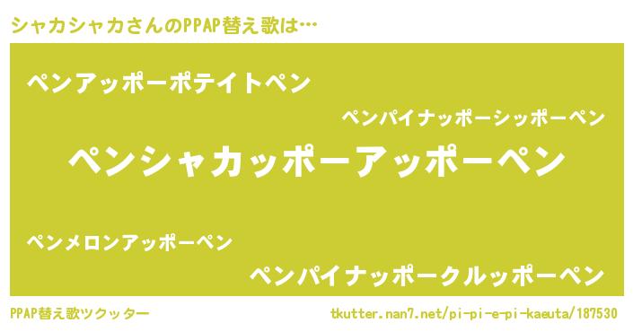 | ピコ太郎風あだ名 | 『シャ四郎』『ピシ八郎』『シシ太郎』 |