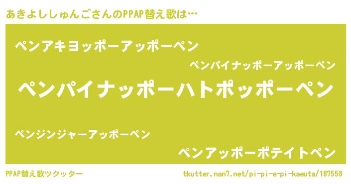| ピコ太郎風あだ名 | 『アア太郎』『アキ一郎』『ピア五郎』 |