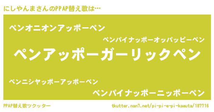 | 意味不明あだ名 | 『自称にしやんま』『ペロリンにしやんま』 |