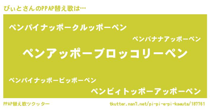 | 欧米人風あだ名 | 『ケンブリッジびぃと』『ダニエルびぃと』 |