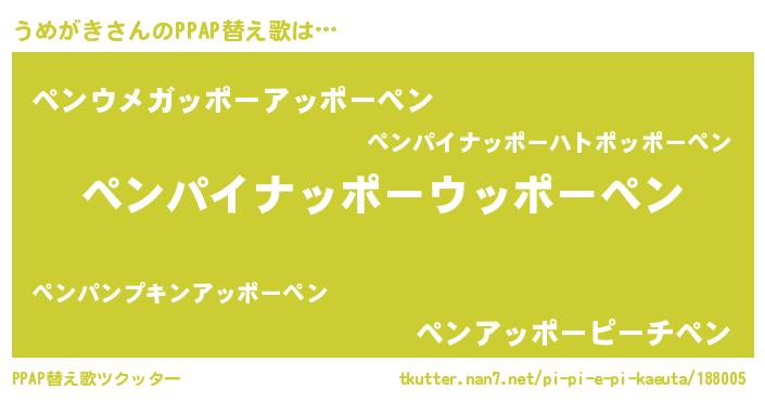 | ピコ太郎風あだ名 | 『ピコウ郎』『ウメ太郎』『ピウ次郎』 |