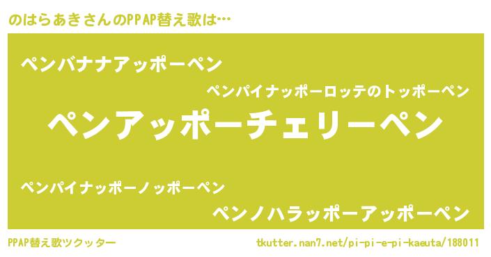 | 意味不明あだ名 | 『自称のはらあき』『ペロリンのはらあき』 |