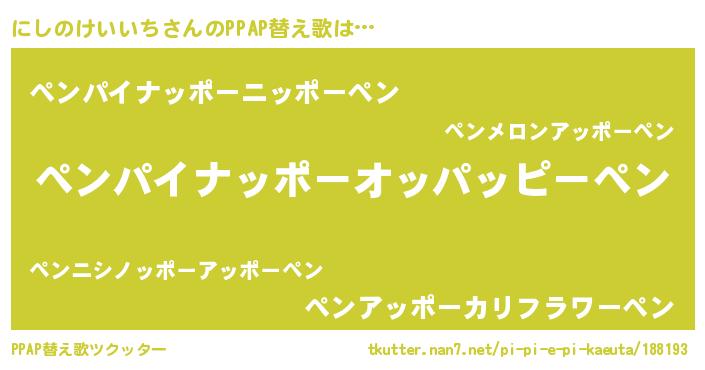 | 意味不明あだ名 | 『自称にしのけいいち』 |
