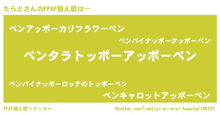 | 欧米人風あだ名 | 『アンジェラ・たらと』『ウサインたらと』 |