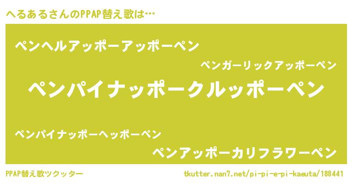 | ピコ太郎風あだ名 | 『ヘヘ太郎』『ヘル十郎』『ピヘ二郎』 |