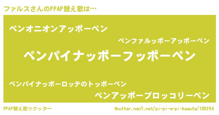 | 意味不明あだ名 | 『永久保存ファルス』『ペロリンファルス』 |