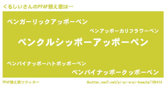 | 意味不明あだ名 | 『自称くるしい』『ペロリンくるしい』 |