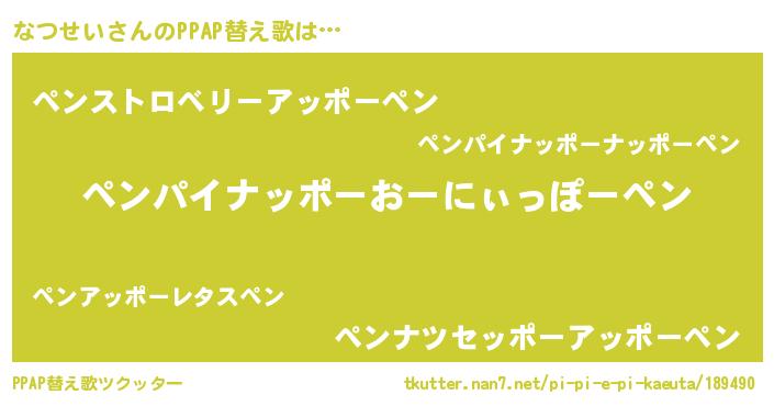 | ピコ太郎風あだ名 | 『ナナ太郎』『ナコ一郎』『ナツ五郎』 |