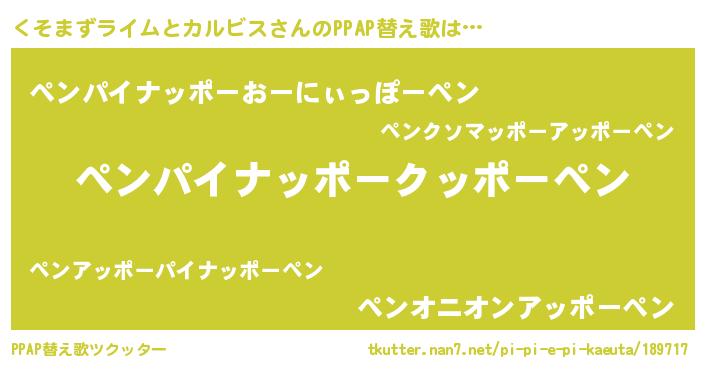 | 欧米人風あだ名 | 『トリンドルくそまずライムとカルビス』 |