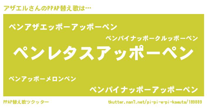 | 意味不明あだ名 | 『ペロリンアザエル』『永久保存アザエル』 |