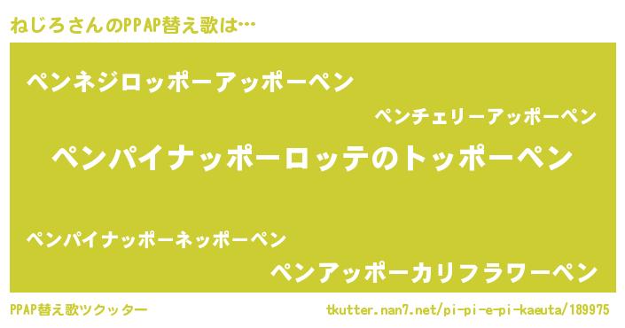 | ピコ太郎風あだ名 | 『ネネ太郎』『ネジ次郎』『ピネ二郎』 |