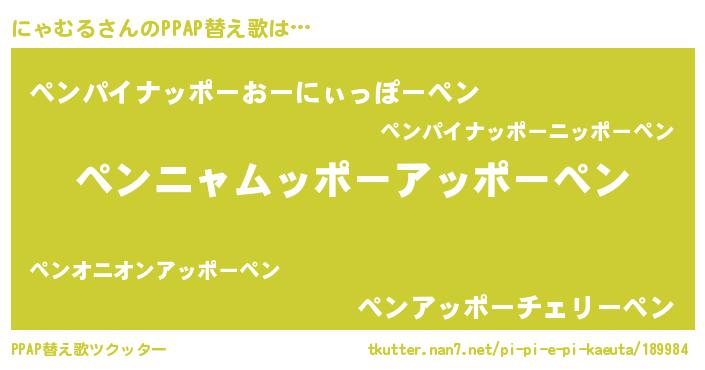 | ピコ太郎風あだ名 | 『ニャ六郎』『ニニ太郎』『ピニ一郎』 |