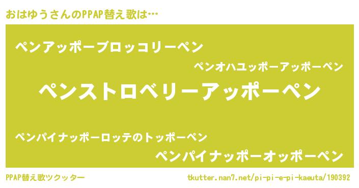 | 意味不明あだ名 | 『ペロリンおはゆう』『自称おはゆう』 |