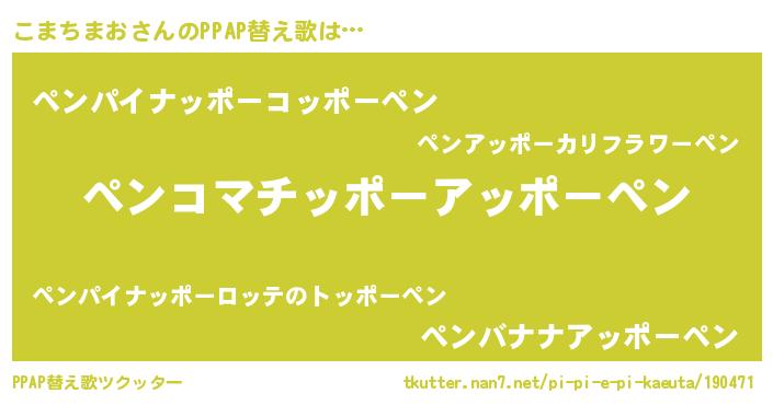 | 欧米人風あだ名 | 『ウサインこまちまお』 |
