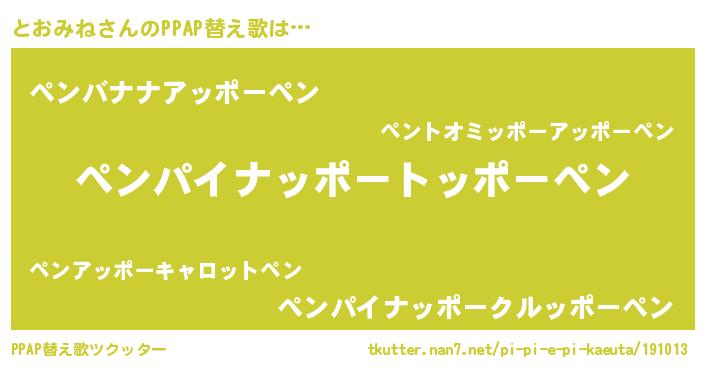 | ピコ太郎風あだ名 | 『ピコト郎』『トコ次郎』『トト太郎』 |