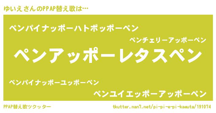 | 意味不明あだ名 | 『ゆいえフォーエバー』『ペロリンゆいえ』 |