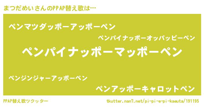 | ピコ太郎風あだ名 | 『ピコマ郎』『マツ史郎』『ピマ六郎』 |
