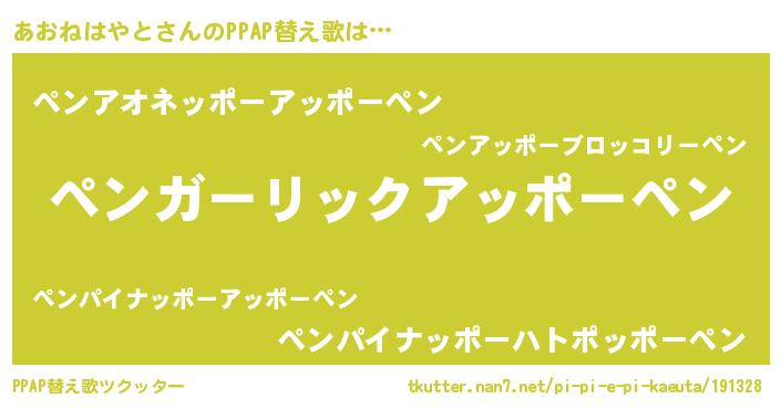 | 欧米人風あだ名 | 『トリンドルあおねはやと』 |