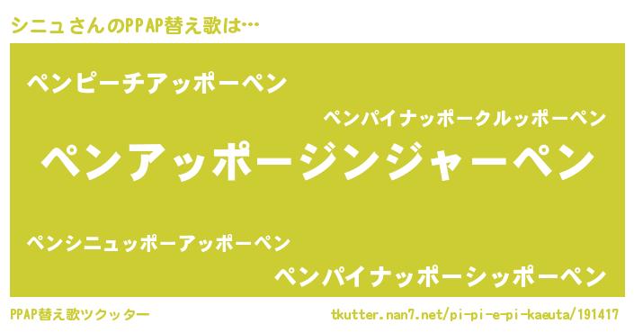 | ピコ太郎風あだ名 | 『ピシ五郎』『シコ次郎』『ピコシ郎』 |