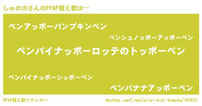 | 料理風あだ名 | 『しゅののごはん』『しゅのののトマト煮』 |