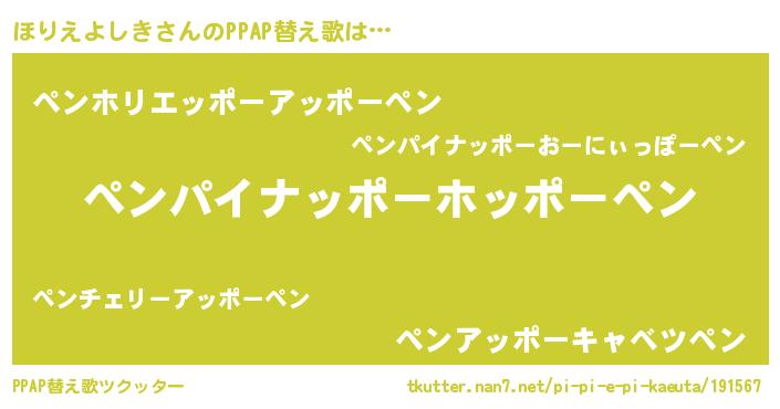 | ピコ太郎風あだ名 | 『ピコホ郎』『ホリ五郎』『ピホ四郎』 |