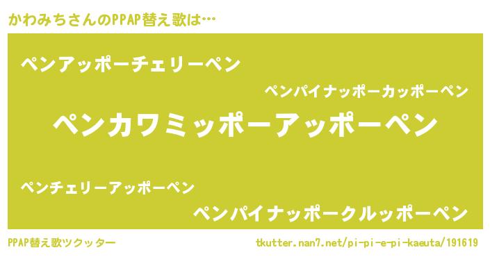 | ピコ太郎風あだ名 | 『カワ五郎』『ピカ三郎』『カカ太郎』 |