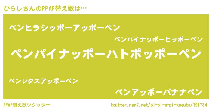 | 男性向けラノベタイトル風あだ名 | 『Re:ひらしから始める異世界生活』 |