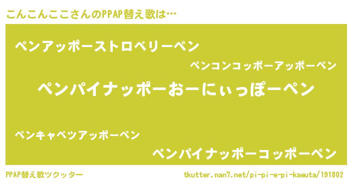 | 料理風あだ名 | 『バターが決め手!こんこんここ変身コクうまパスタ』 |