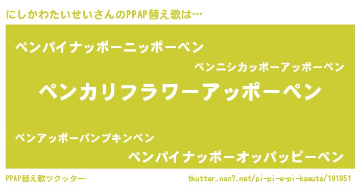 | ツイッター | にしかわたいせいさんのツイッターID『fukuyoka_idle』 |