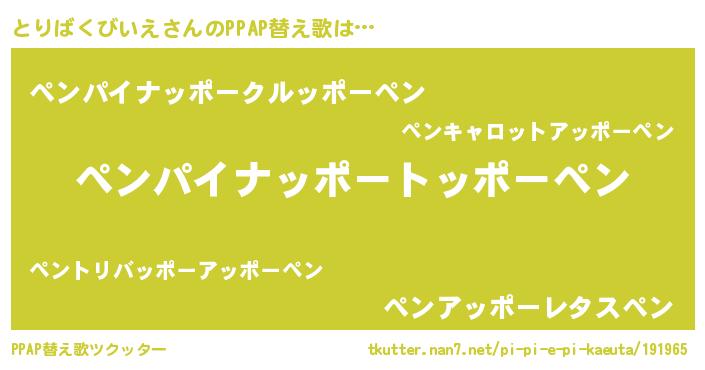 | 欧米人風あだ名 | 『ダレノガレとりばくびいえ』 |