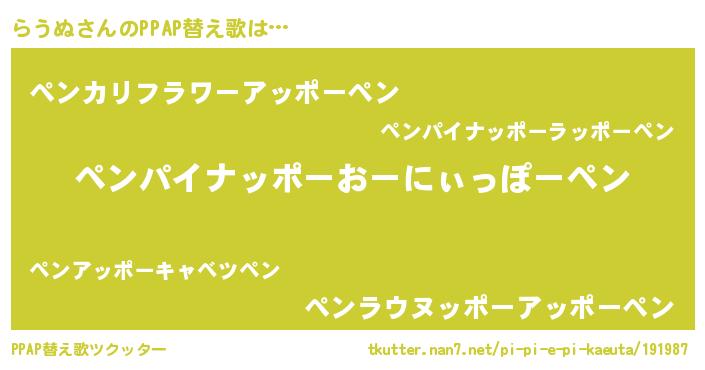 | 意味不明あだ名 | 『眠気覚ましガムらうぬ味』『自称らうぬ』 |