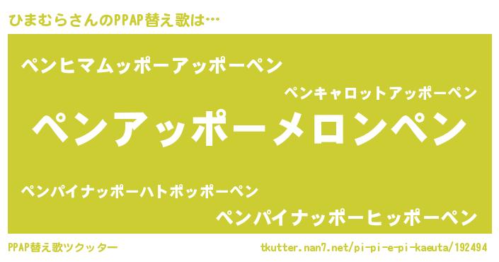 | ピコ太郎風あだ名 | 『ピヒ太郎』『ヒマ五郎』『ピコヒ郎』 |