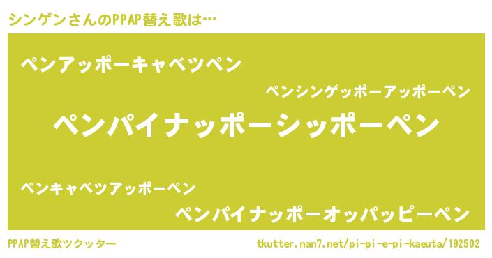 | ピコ太郎風あだ名 | 『ピコシ郎』『ピシ四郎』『シシ太郎』 |