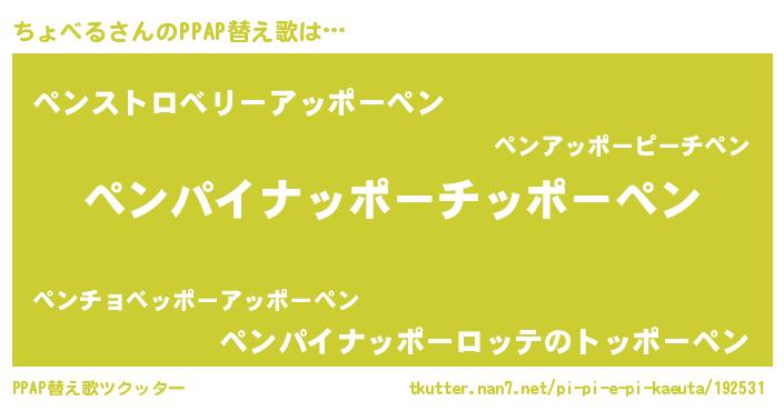 | 意味不明あだ名 | 『住所不定無職ちょべる(86歳)』 |