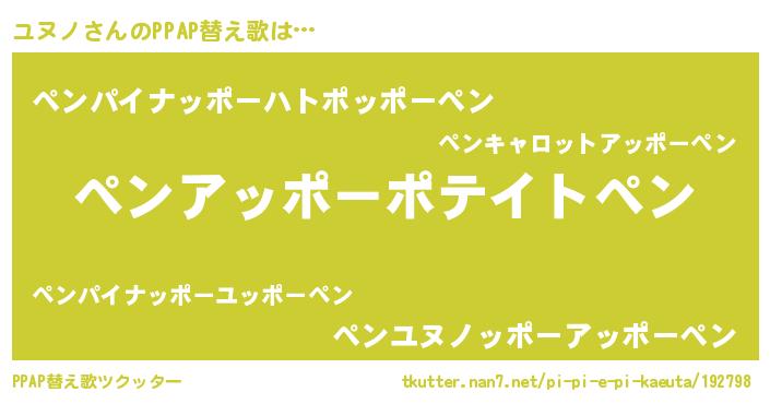 | ピコ太郎風あだ名 | 『ピユ五郎』『ユユ太郎』『ユヌ二郎』 |