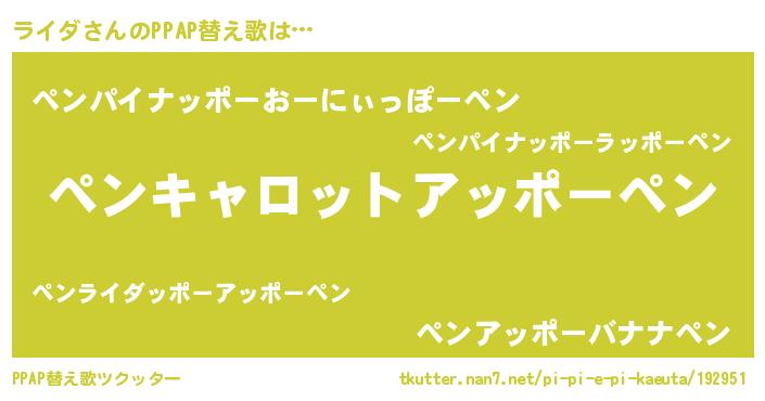 | 男性向けラノベタイトル風あだ名 | 『ライダスレイヤー』『ライダの憂鬱』 |