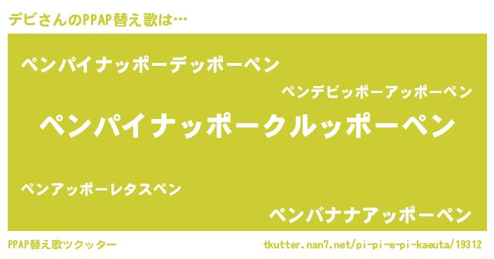 | 意味不明あだ名 | 『しいたけ科デビ属』『自称デビ』 |