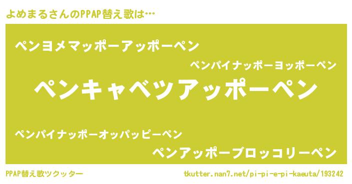 | ピコ太郎風あだ名 | 『ヨコ四郎』『ヨメ二郎』『ピヨ十郎』 |