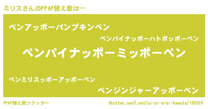 | 意味不明あだ名 | 『永久保存ミリス』『ミリスフォーエバー』 |