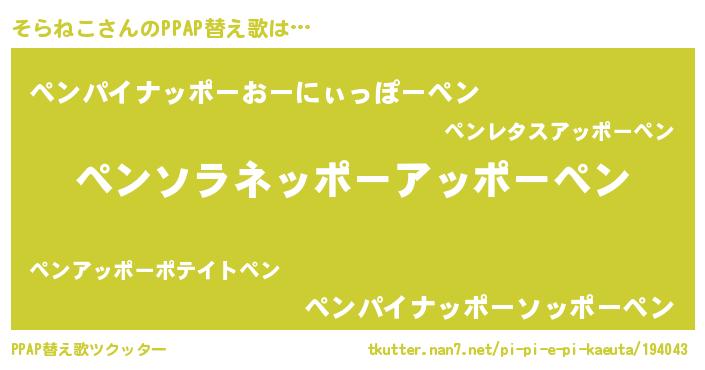 | 欧米人風あだ名 | 『ウサインそらねこ』『ダニエルそらねこ』 |