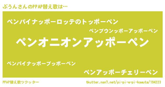 | ピコ太郎風あだ名 | 『ブコ六郎』『ブブ太郎』『ピブ三郎』 |