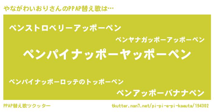 | ヘコむあだ名 | 『やながわいおり(笑)』『やなふぇ~』 |
