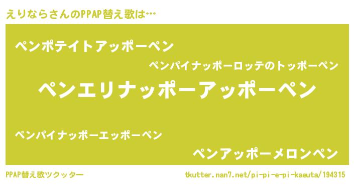 | ピコ太郎風あだ名 | 『エリ六郎』『エコ四郎』『ピエ太郎』 |