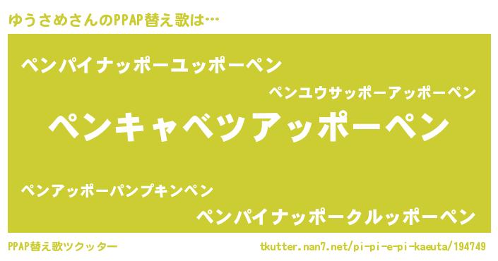 | 意味不明あだ名 | 『ペロリンゆうさめ』『永久保存ゆうさめ』 |