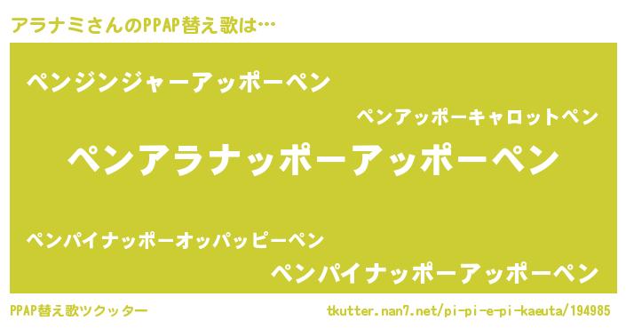 | 意味不明あだ名 | 『エリンギ科アラナミ属』『自称アラナミ』 |