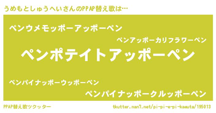 | ポケモン風あだ名 | 『ウメチュウ』『ヒウメモトシュウヘイ』 |