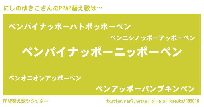 | ヘコむあだ名 | 『にしのゆきこ(震え声)』『豆乳』 |