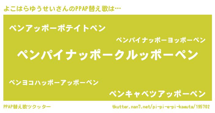 | 料理風あだ名 | 『よこはらゆうせいのカルパッチョ風』 |