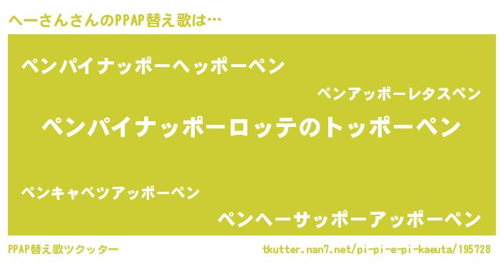 | 意味不明あだ名 | 『自称へーさん』『永久保存へーさん』 |